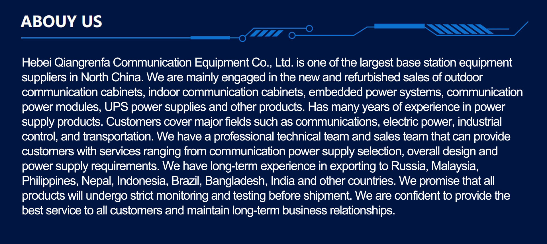 Baoding Qiangrenfa Communication Equipment Co., Ltd.